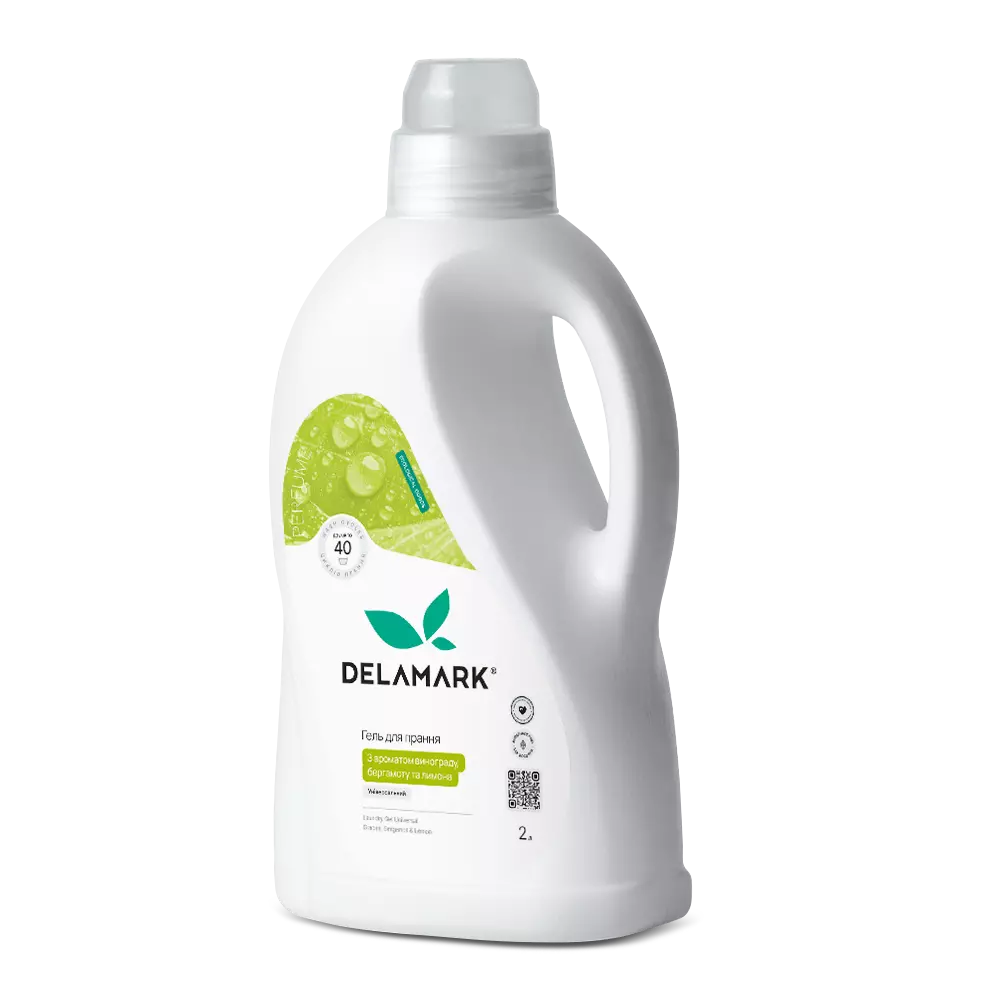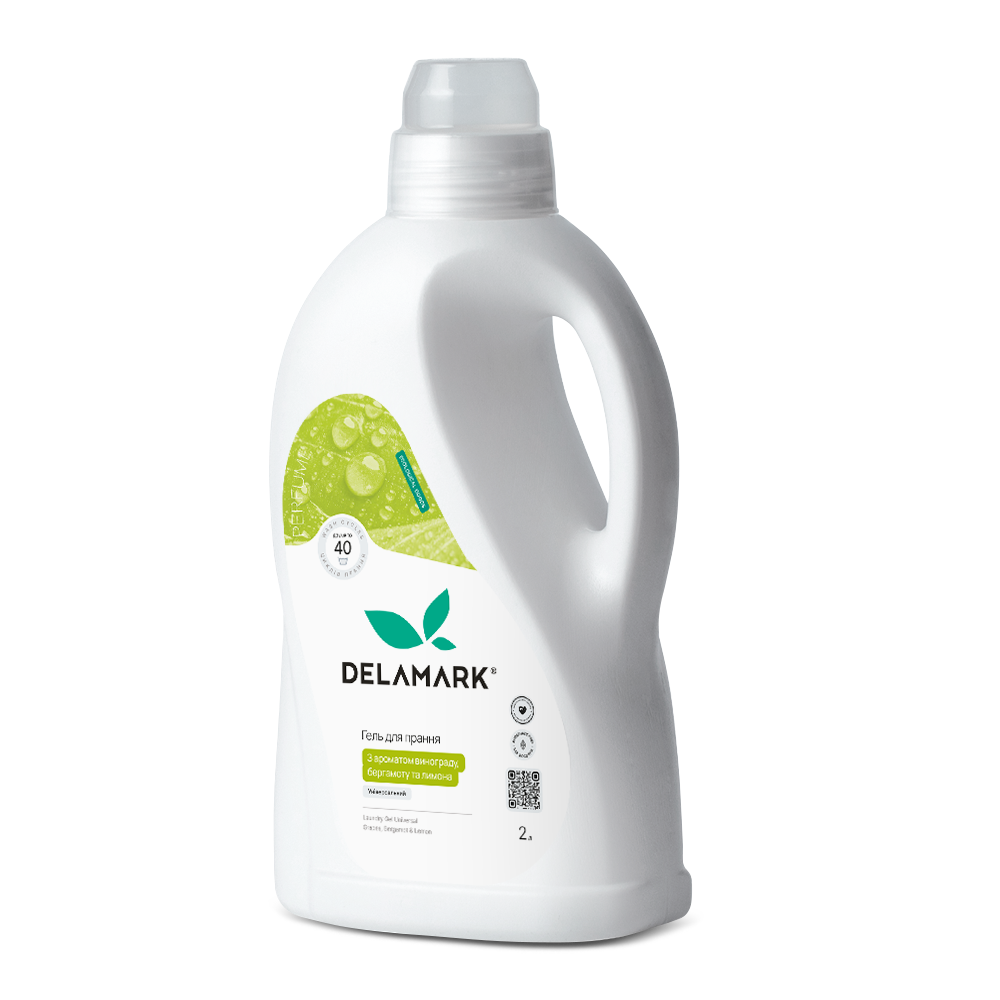 Гель для прання DeLaMark з ароматом винограду, бергамоту та лимона - зручний у застосуванні, має надійну герметичну упаковку.