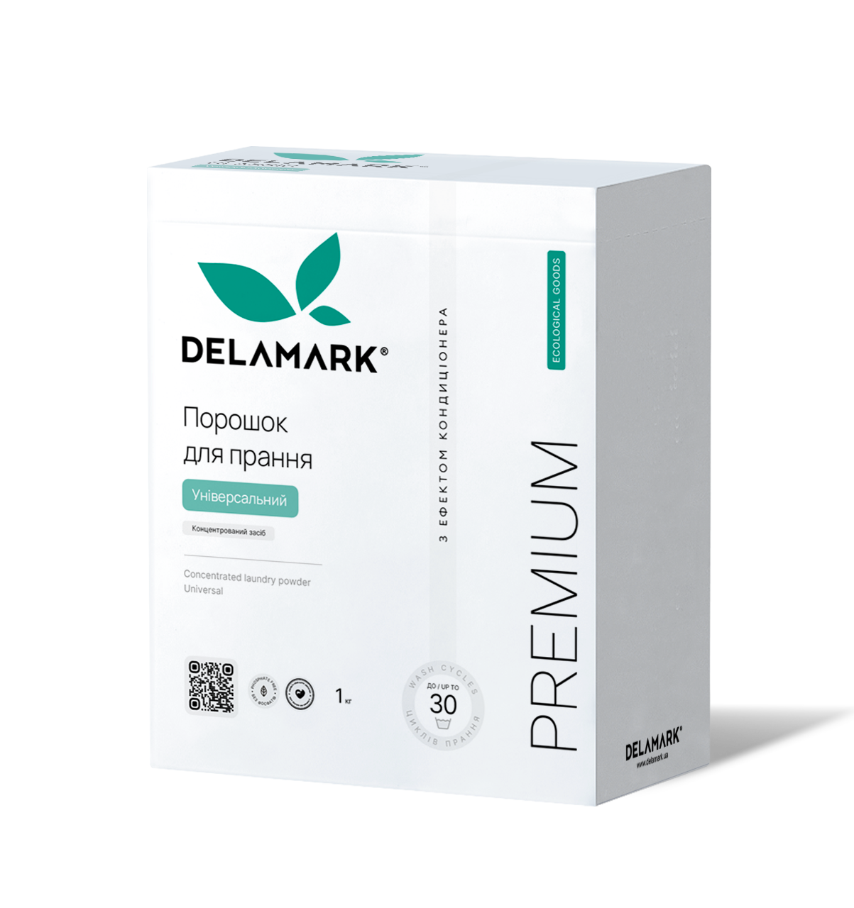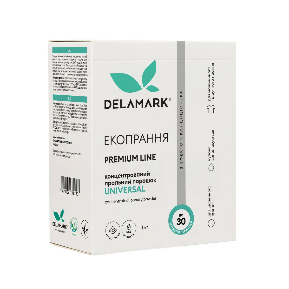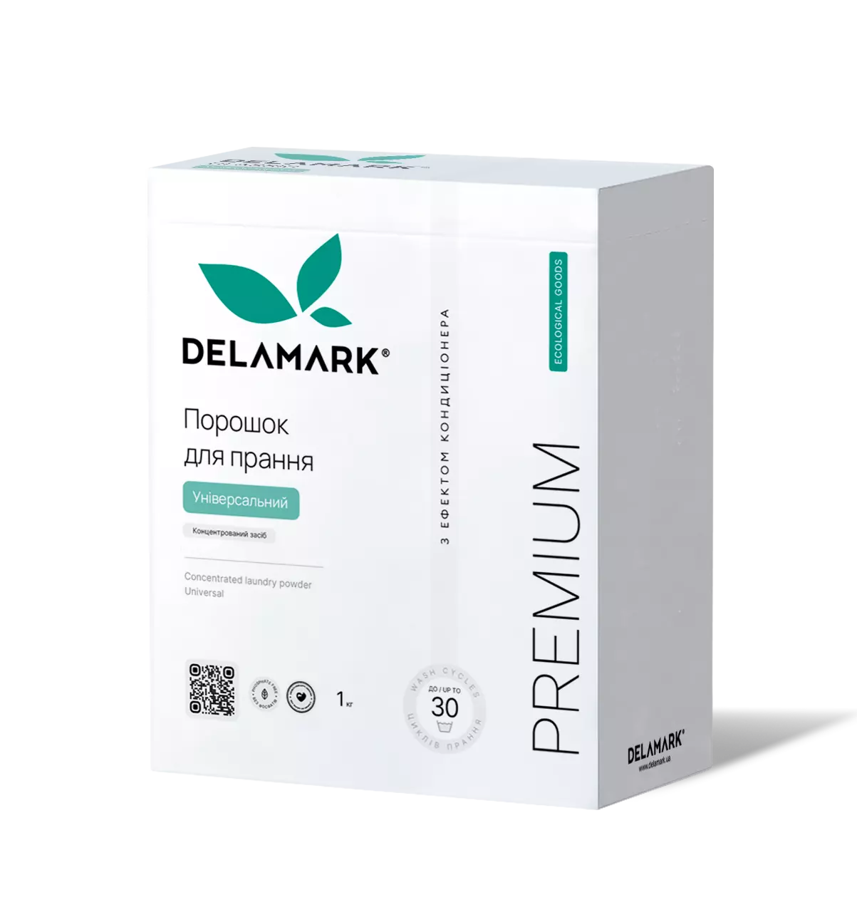 Концентрований безфосфатний пральний порошок Delamark Premium Line Universal з ефектом кондиціонера 1 кг (4820152330963)