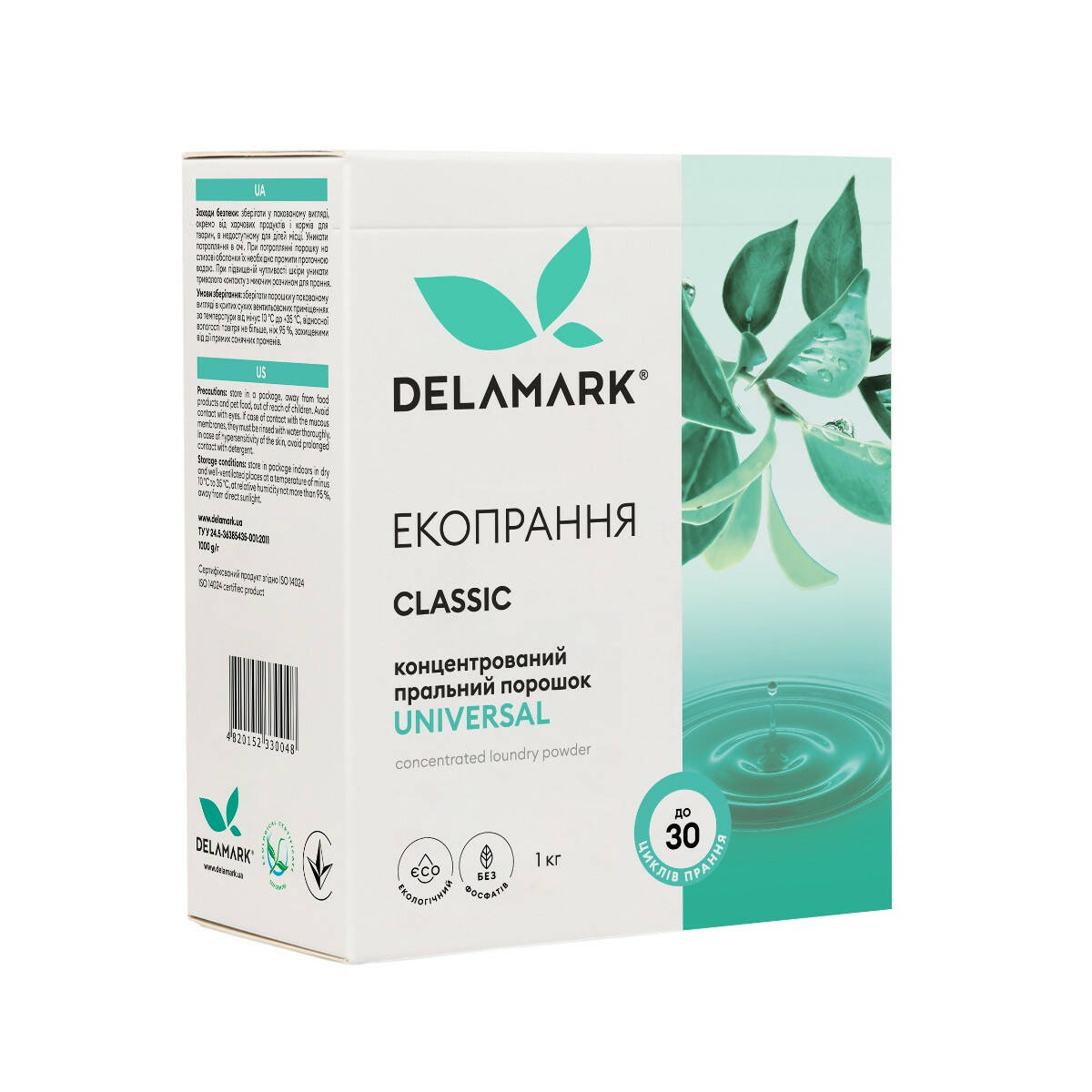 Концентрований безфосфатний пральний порошок Delamark Universal 1 кг (4820152330048)