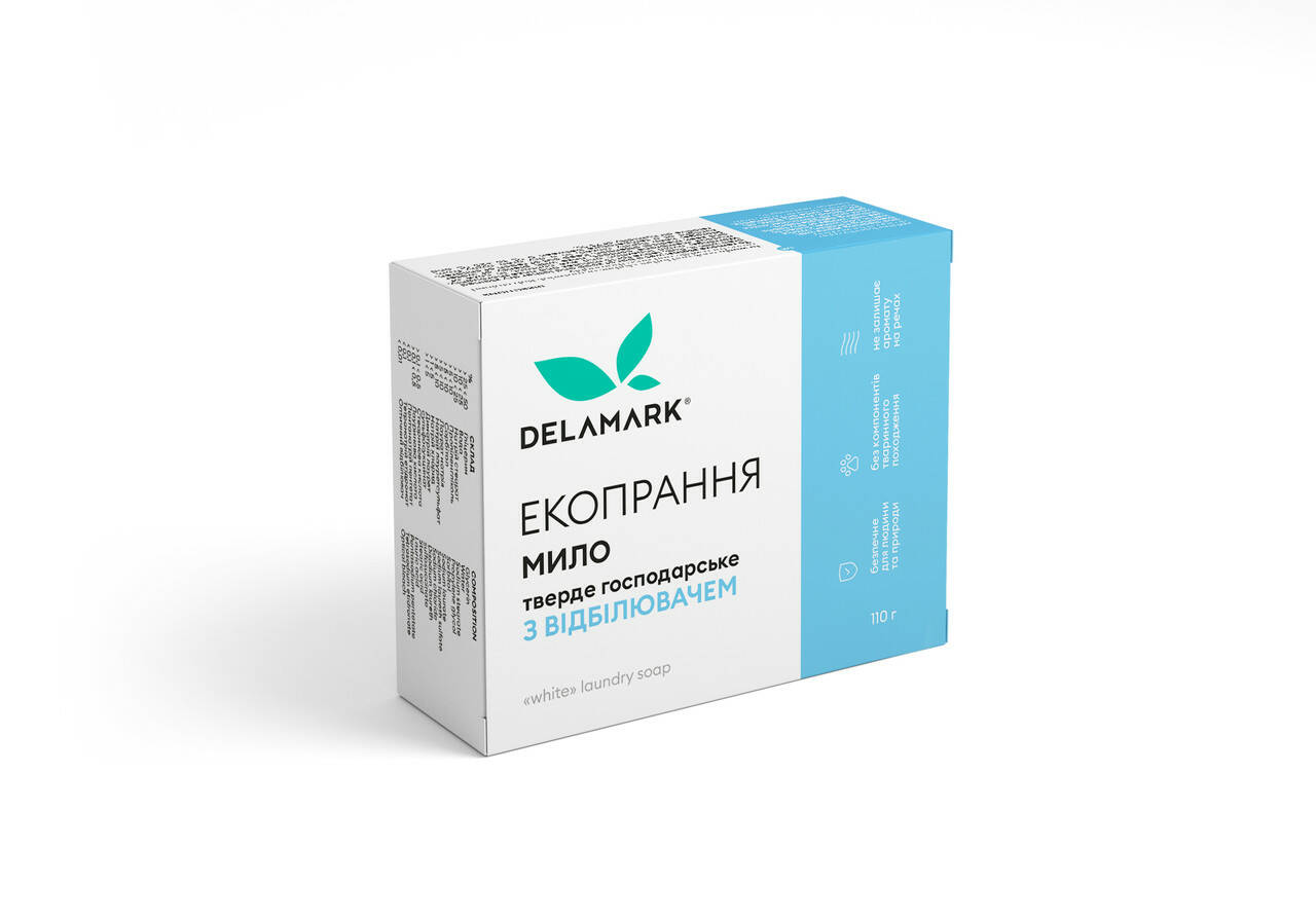 Тверде господарське мило Delamark з відбілювачем 110 г (4820152330383)