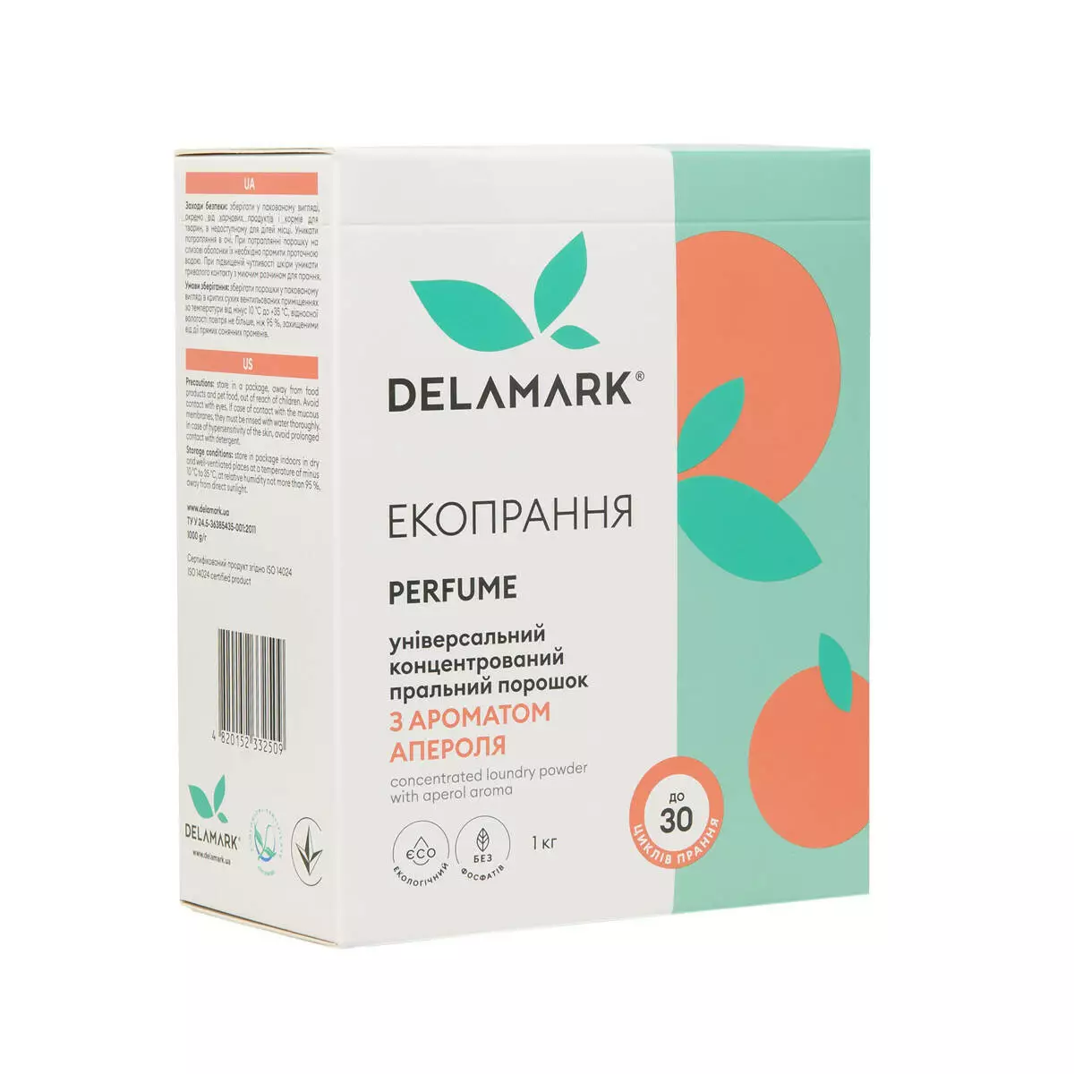 "Універсальний концентрований пральний порошок DeLaMark з ароматом апероля призначений для машинного й ручного прання виробів із бавовняних, лляних, синтетичних, штучних тканин, а також тканин зі змішаних волокон.