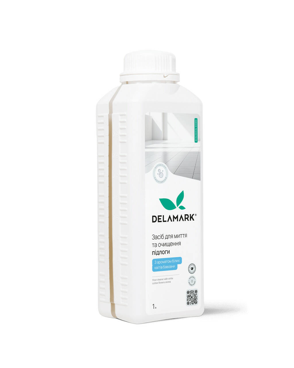 Безпечність рідини для миття та очищення підлог DeLaMark з ароматом білих квітів бавовни підтверджена екологічним сертифікатом "Жива планета".