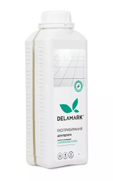 Концентрований засіб для миття й очищення підлоги з ароматом м'яти De La Mark — спеціально розроблений для простого й безпечного вологого прибирання підлог з усіх типів матеріалів: лінолеуму, ламінату, паркету, керамічної та гранітної плитки. Має безпечний склад, легко змивається. Добре видаляє бруд і не залишає розводів. Розроблений технологами міжнародного рівня, щоб підлоги з будь-якого матеріалу блищали чистотою за мінімальних зусиль і без шкоди для людей і довкілля