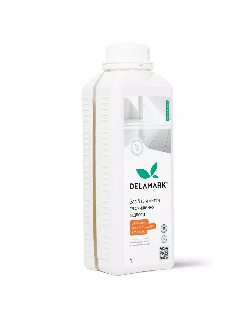 Безпечність рідини для миття та очищення підлог DeLaMark з ароматом жасмину та апельсинової квітки підтверджена екологічним сертифікатом "Жива планета". Склад Вода очищена, Карбонат кальцію, Гліцерин, Мило на основі рослинних компонентів, Діоксид кремнію , Тринатрієва сіль метилгліциндіоцтової кислоти, Кокосульфат Натрію, Консервант, Ксантанова Камедь,