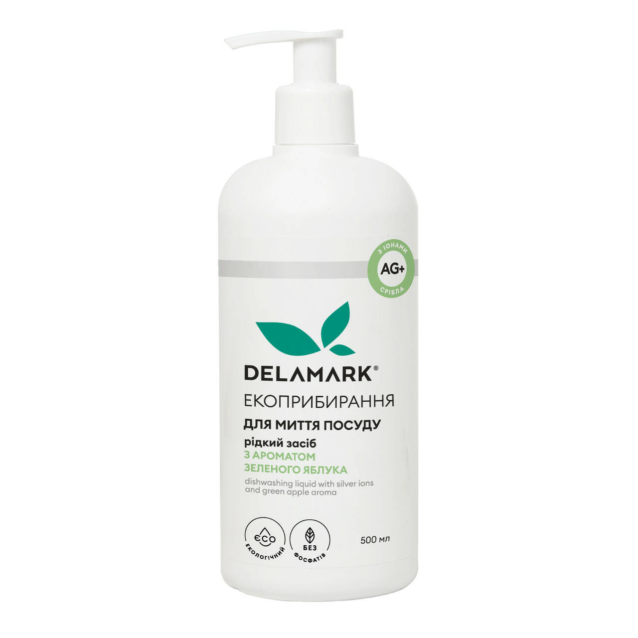 Засіб для миття посуду Delamark з іонами срібла Зелене яблуко 0.5 л (4820152331021)