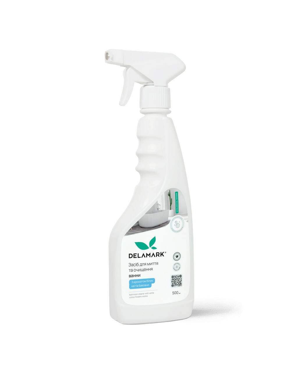 Біорозкладаються на 98%, тому не завдають шкоди природі. Безпечність засобів для миття та очищення ванної DeLaMark з ароматом білих квітів бавовни доведена екологічним сертифікатом "Жива планета".