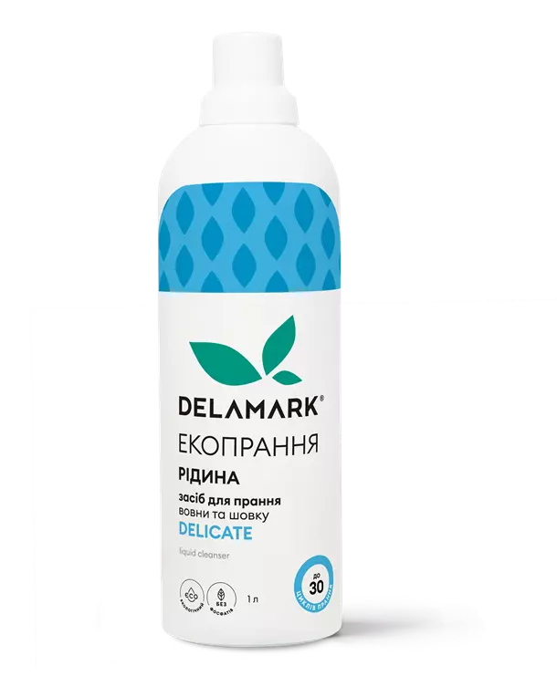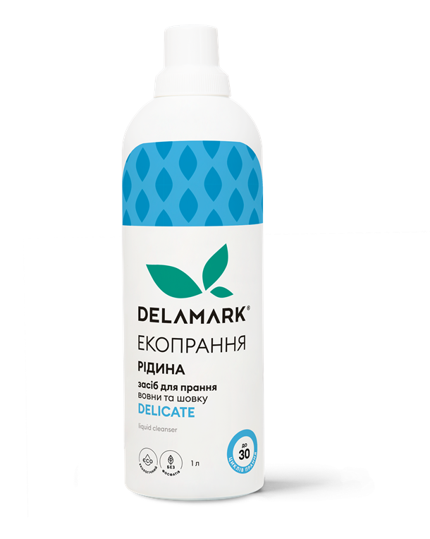 Безфосфатна не лужна концентрована рідина для прання делікатних речей De La Mark Delicate — новинка для прання делікатних тканин: шовку та вовни. Ефективно відпирає найбільш поширені забруднення, біологічні та харчові плями. Не ушкоджує натуральних волокон білкового походження. Не містить загусників, тому швидко потрапляє в барабан пральної машини та починає діяти з перших хвилин прання.