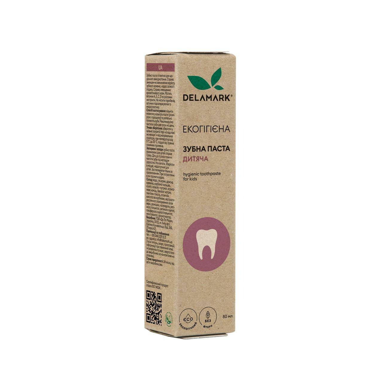 Приголомшлива новинка в екопакованні — дитяча гігієнічна зубна паста DeLaMark з ароматом полуниці для щоденного застосування.
